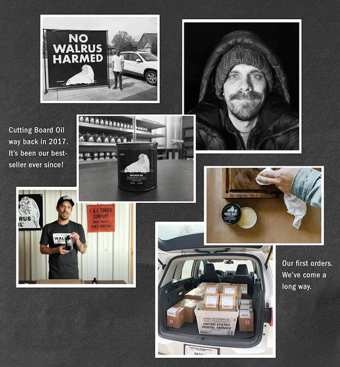 It all started in a humble garage in 2017 by Dave Darr, a seasoned woodworker and culinary enthusiast, crafting tables and accessories for restaurants. To help protect his work taking daily beatings, he brewed up his first batch of Walrus Oil on a kitchen stove. Customers loved it, word spread, and in less than a year after product launch, he was making more oil than sawdust 100x over.